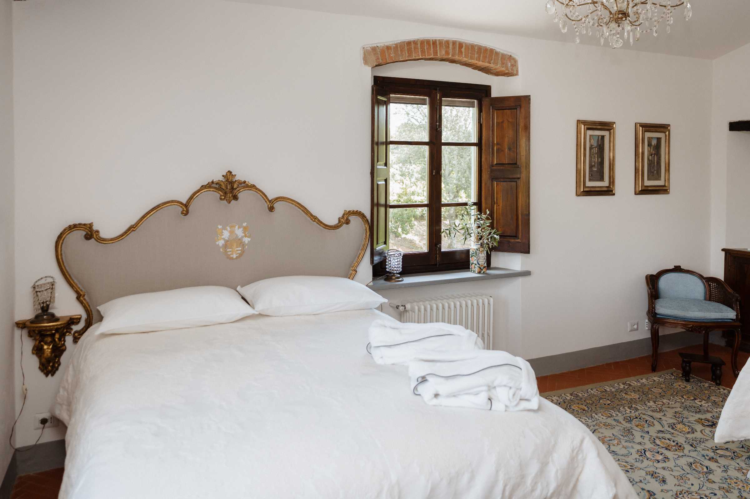 SOLEeVINO B&BThe Deluxe Double Queen Room is bright, airy, and effortlessly stylish, with soft neutral tones and large dual-aspect windows that let natural light pour in. Perfect for two friends or couples who like their own space, it features two custom queen beds with premium mattresses for maximum comfort. Antique bedheads, a stunning Italian chandelier, and a hand-woven Persian rug add subtle luxury, while the windows frame peaceful views of the courtyard or countryside.€ 380 per night